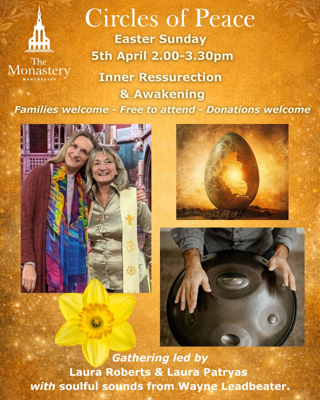Circles of Peace Gathering for women and men of all beliefs A soulful monthly gathering of spiritual unity ✨ Rev Laura Roberts and Rev.Dr Laura Patryas warmly invite you to join them